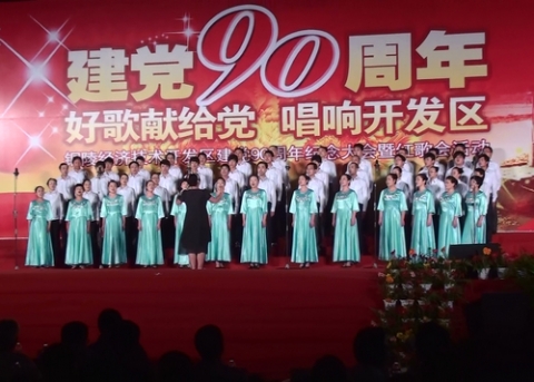 6月2日晚上的翠湖廣場,燈火璀璨,微風(fēng)徐徐。銅陵經(jīng)濟(jì)技術(shù)開發(fā)區(qū)舉辦的“好歌獻(xiàn)給黨 唱響開發(fā)區(qū)”喜迎建黨90周年紀(jì)念大會暨紅歌會在這里隆重舉行。